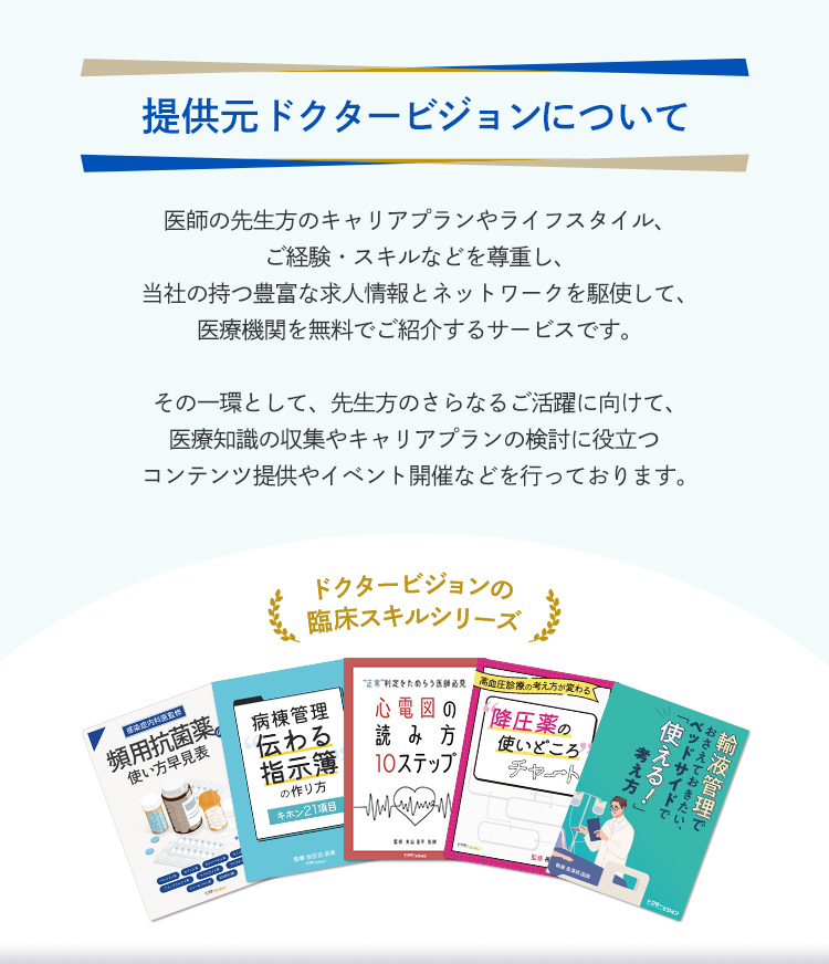 ※ご応募いただいた方には、人材紹介サービスにおける各種情報をはじめ、仕事や生活に役立つ医師コラムなどをご提供するため、メールマガジンをお送りさせていただきます。